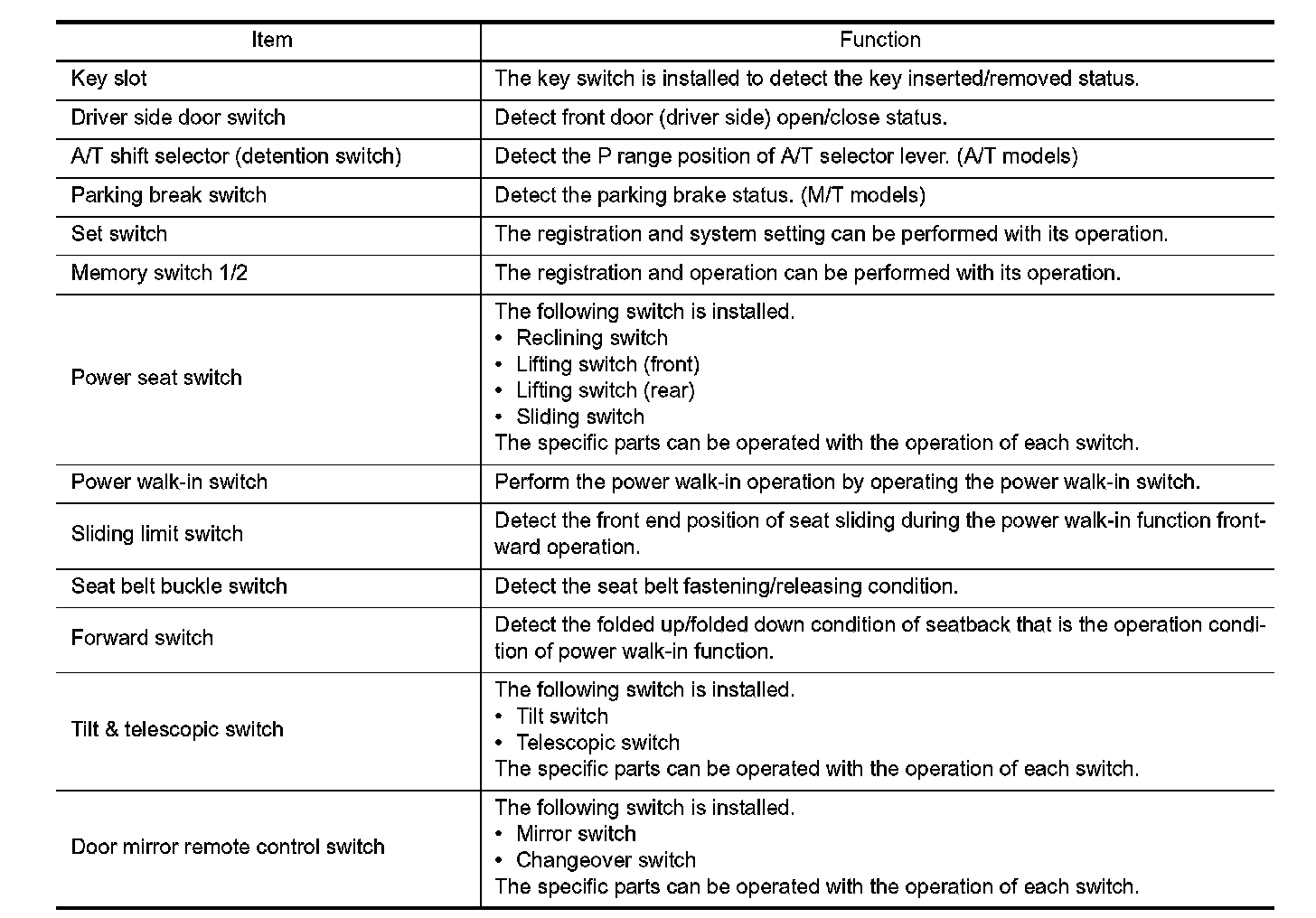 - The seat control unit adopts the sleep mode to reduce the electric power consumption.