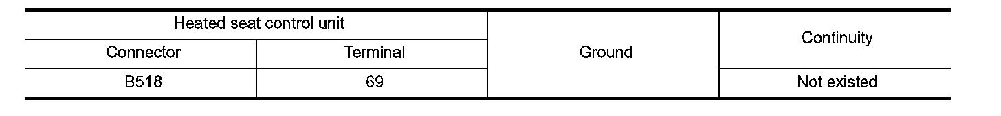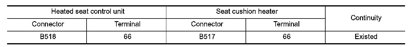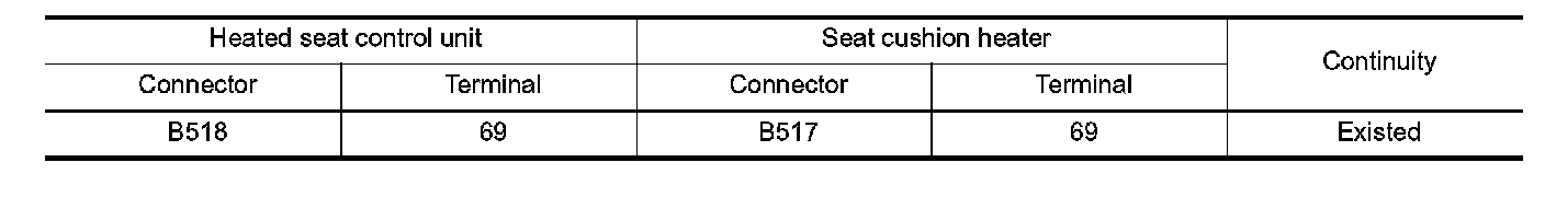3. Check continuity between heated seat control unit harness connector and seat cushion heater harness connector.
