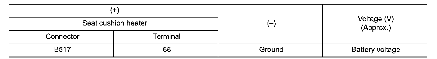3. Check voltage between seat cushion heater harness connector and ground.