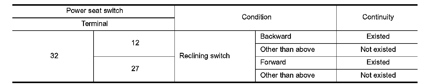 3. Check continuity between power seat switch terminals.