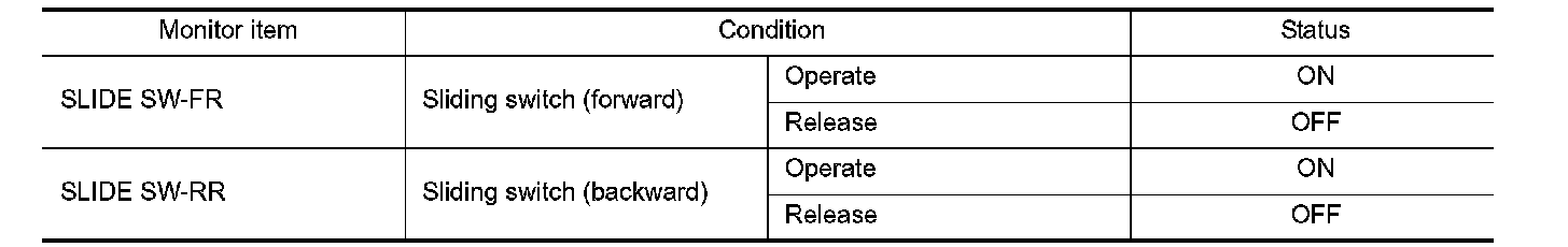 2. Select "SLIDE SW-FR", "SLIDE SW-RR" in the "Data monitor" mode using CONSULT-III.