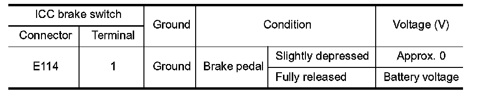 When the brake pedal is depressed, ICC brake switch is turned OFF and stop lamp switch is turned ON. ECM detects the state of the brake pedal by those two types of input (ON/OFF signal). System Description for the ICC function.
