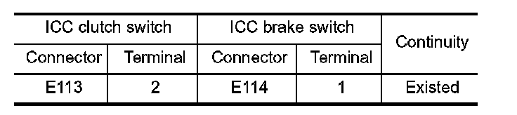 2. Check the continuity between ICC clutch switch harness connector and ICC brake switch harness connector.