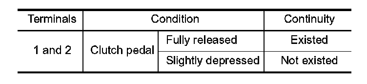 2. Check the continuity between ASCD clutch switch terminals under the following conditions.