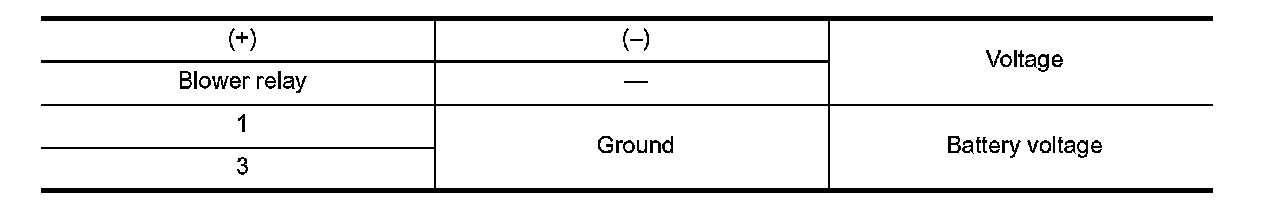 3. Check operation sound of the blower relay after switching ignition switch ON.