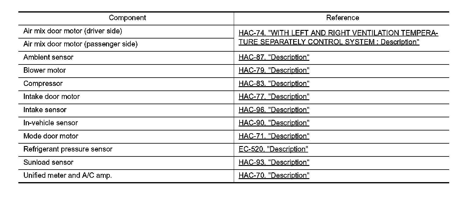 WITH LEFT AND RIGHT VENTILATION TEMPERATURE SEPARATELY CONTROL SYSTEM : Component Description