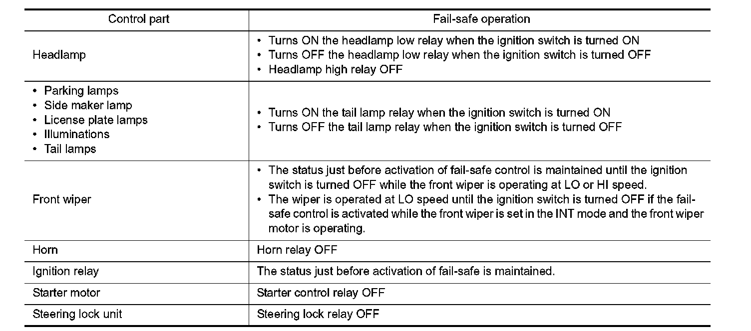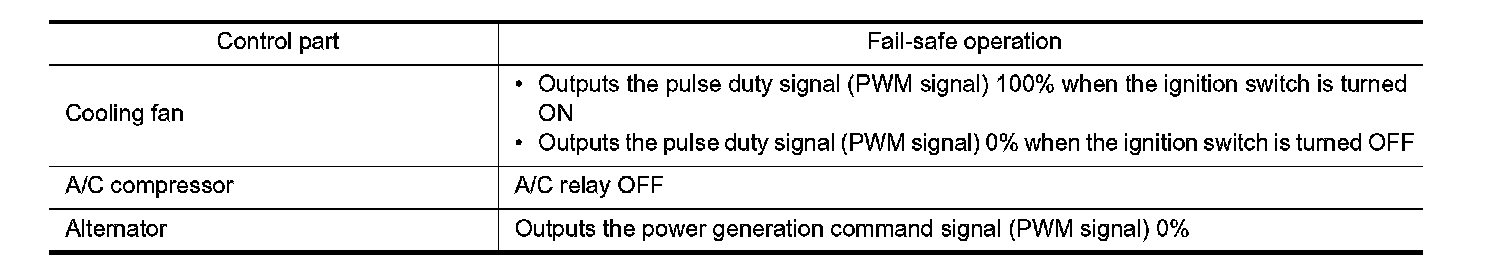 When CAN communication with ECM and BCM is impossible, IPDM E/R performs fail-safe control. After CAN communication recovers normally, it also returns to normal control.