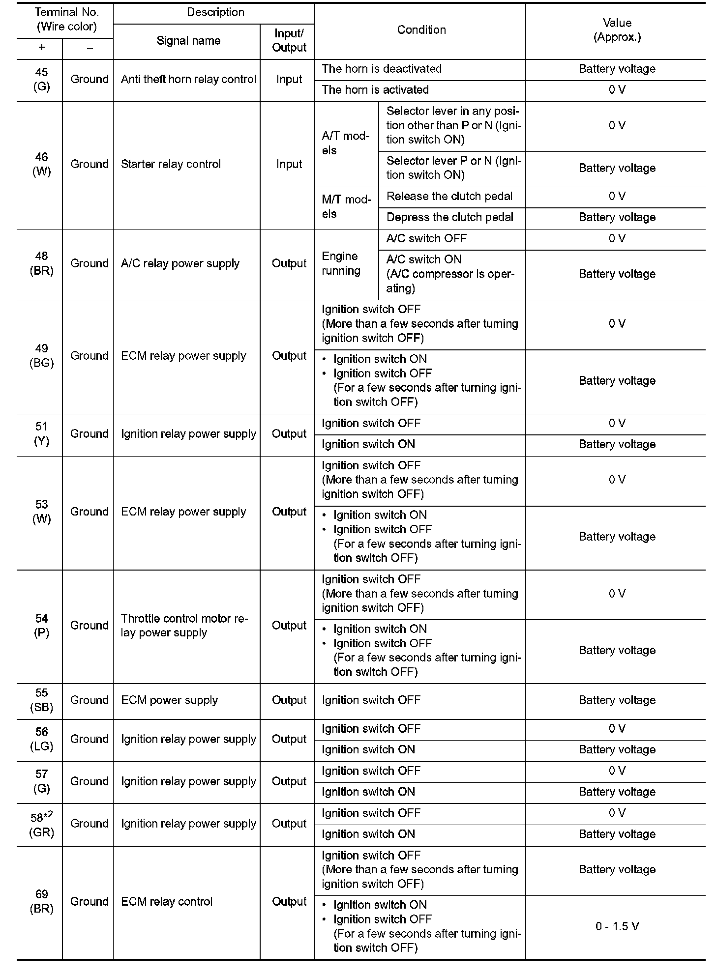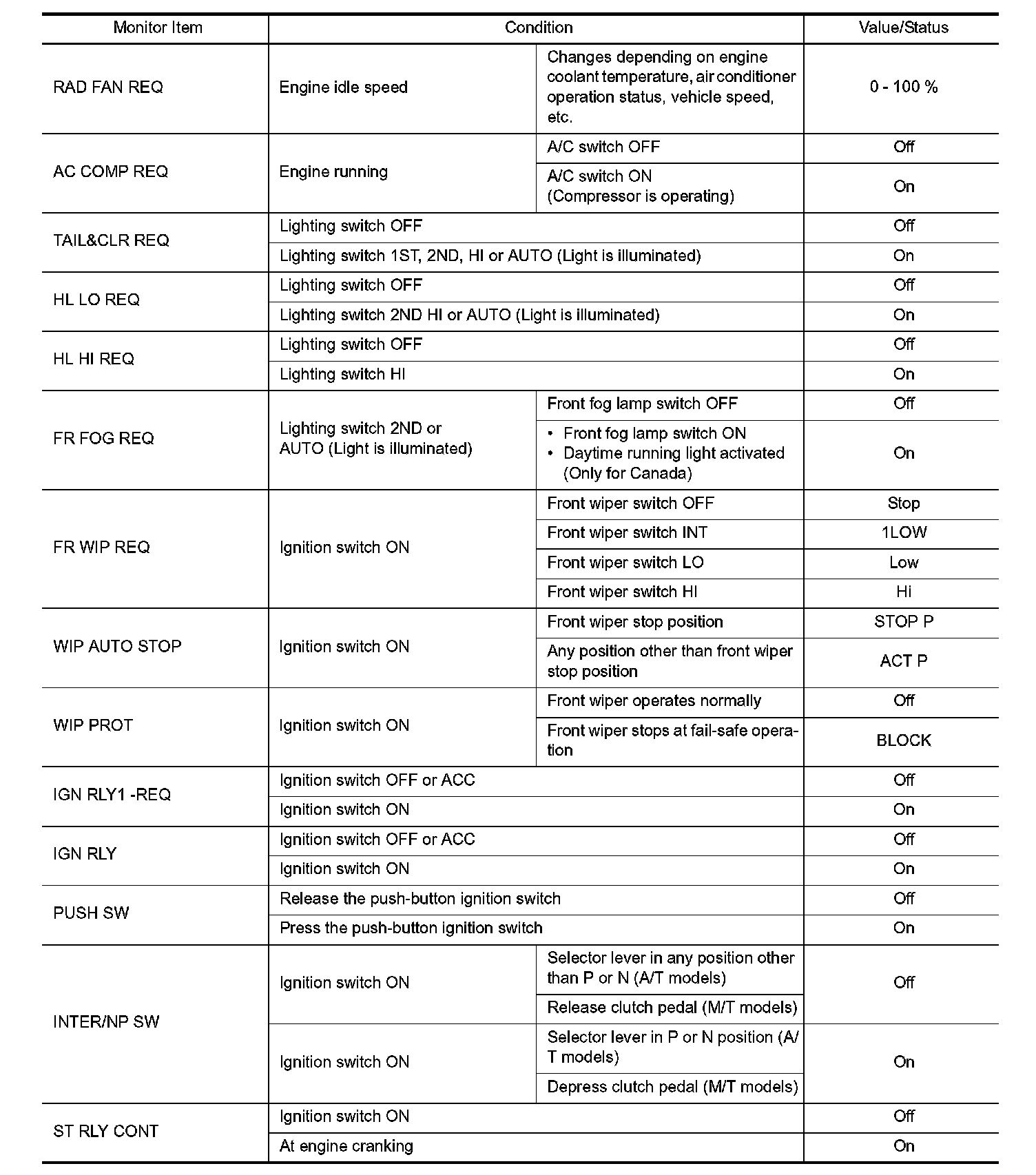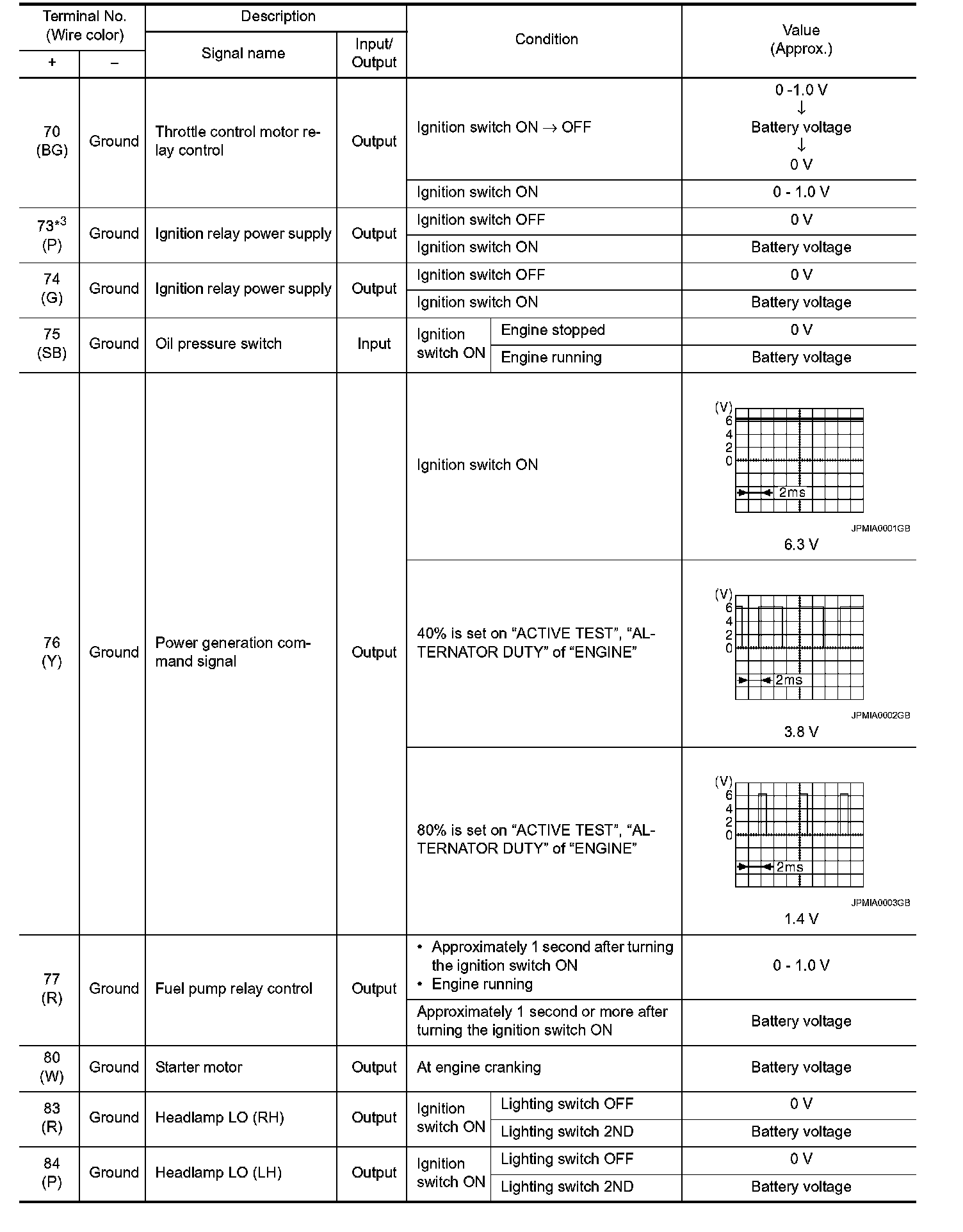 Pinout Values and Diagnostic Parameters