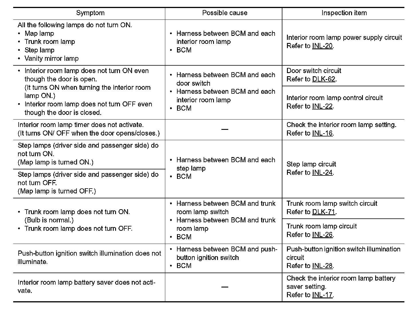 INTERIOR LIGHTING SYSTEM SYMPTOMS