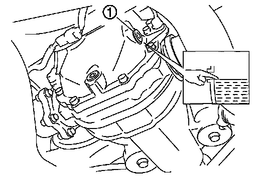 1. Remove filler plug (1). Fill with new gear oil until oil level reaches the specified level near filler plug mounting hole.