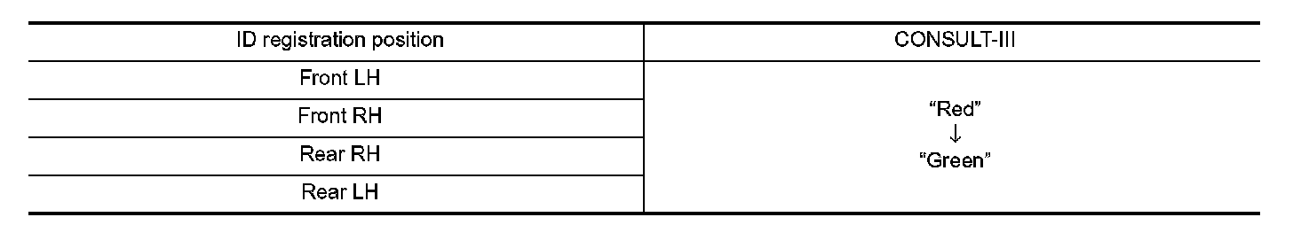 Perform the ID registration procedure starting from the vehicle front left wheel, then repeat the procedure in the order of the front right wheel, rear right wheel, and rear left wheel.