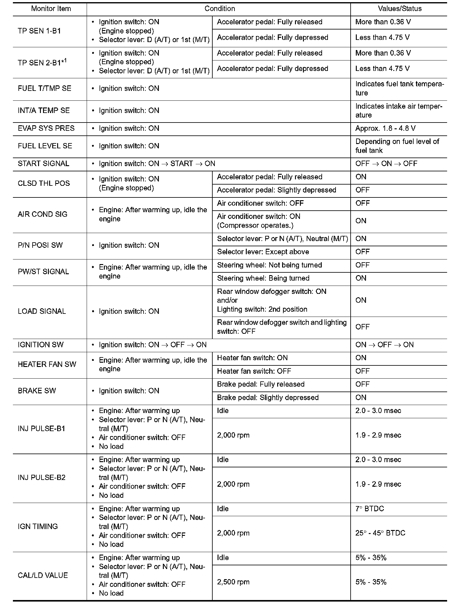 i. e. Adjust ignition timing with a timing light before monitoring IGN TIMING, because the monitor may show the specification data in spite of the ignition timing not being adjusted to the specification data. This IGN TIMING monitors the data calculated by the ECM according to the signals input from the camshaft position sensor and other ignition timing related sensors.