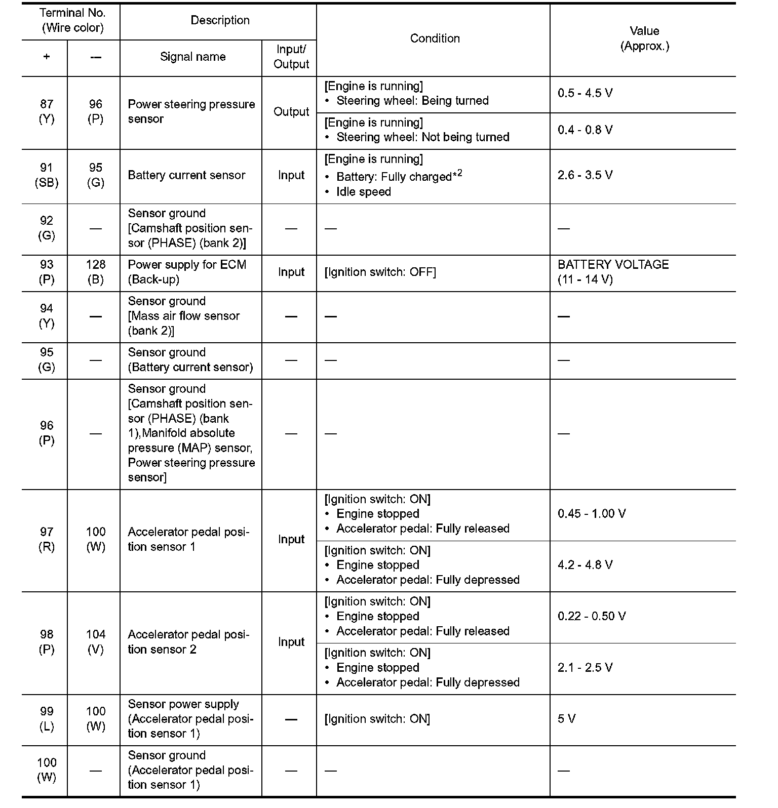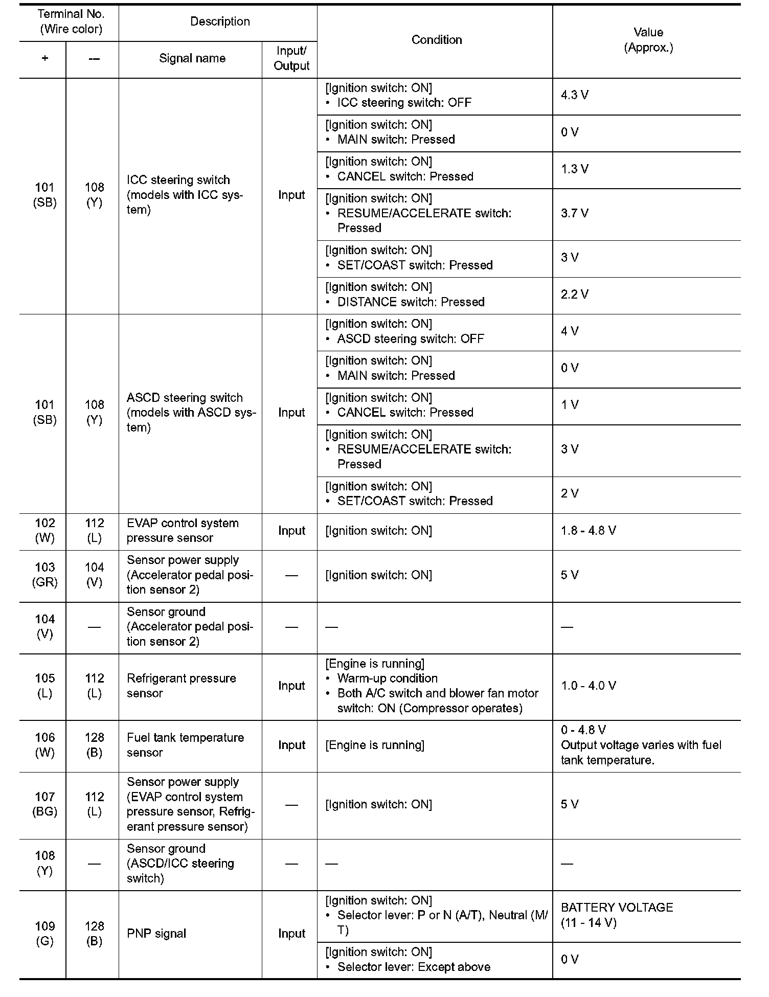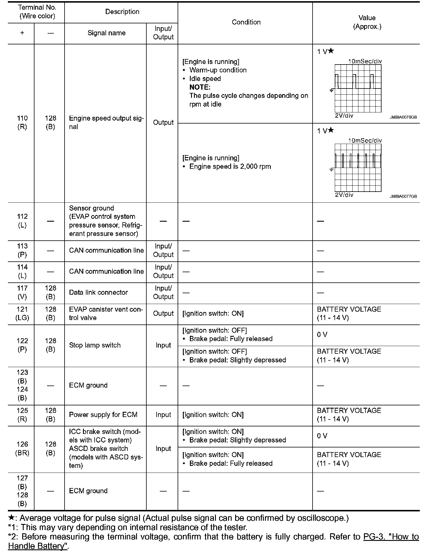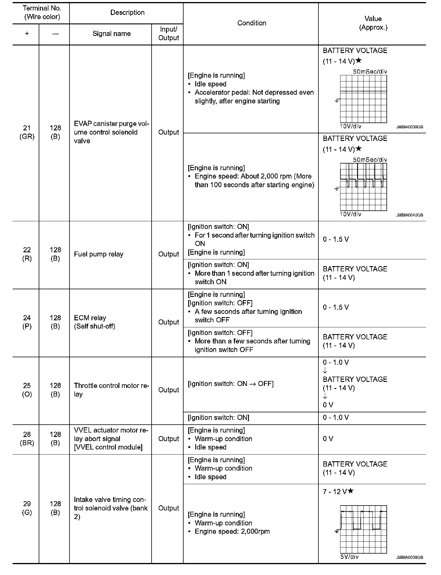 - Specification data are output/input values which are detected or supplied by the ECM at the connector.