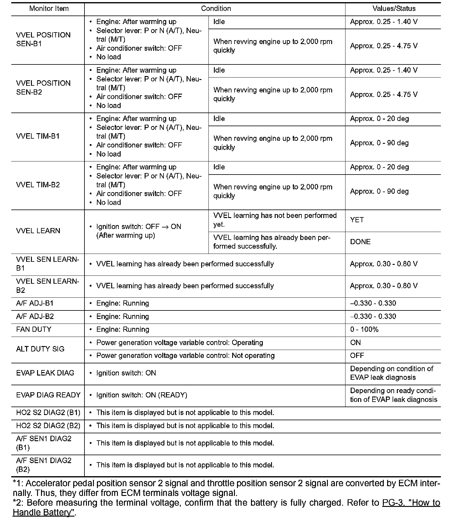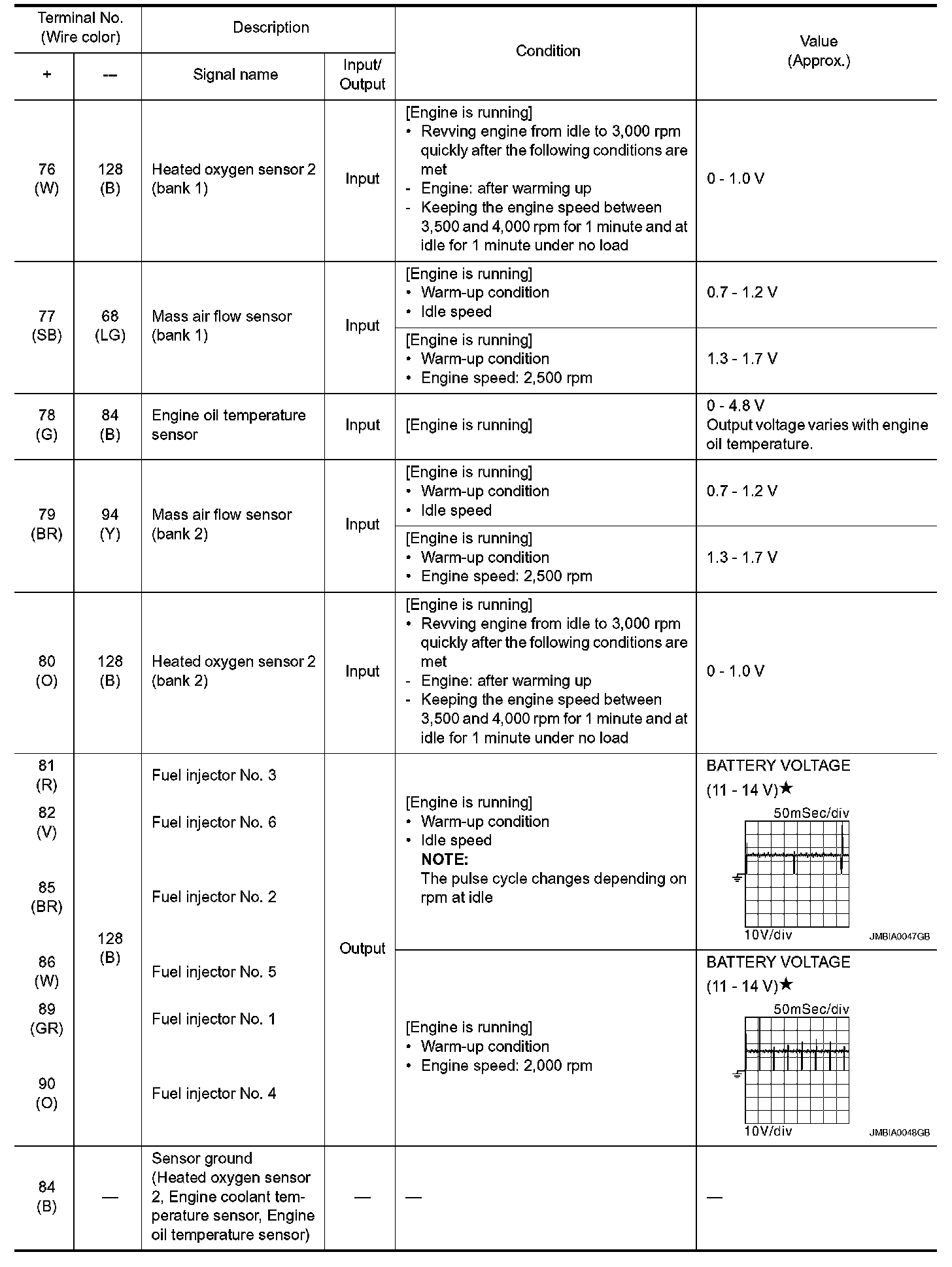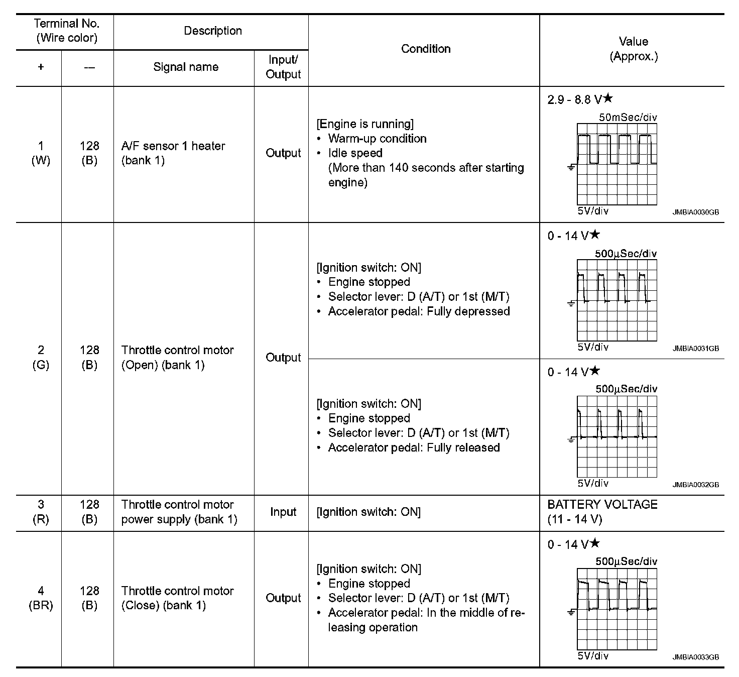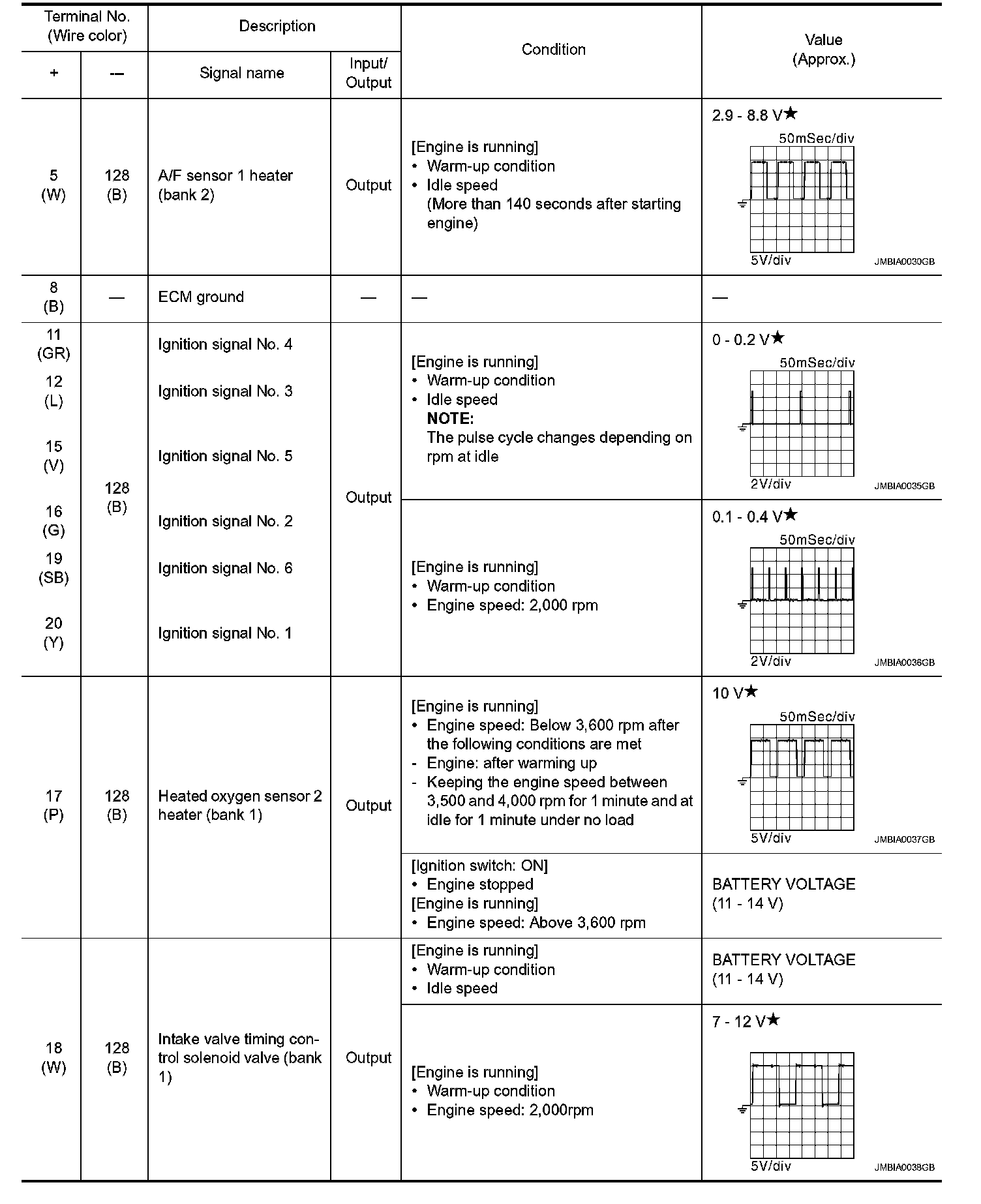 - Specification data are output/input values which are detected or supplied by the ECM at the connector.