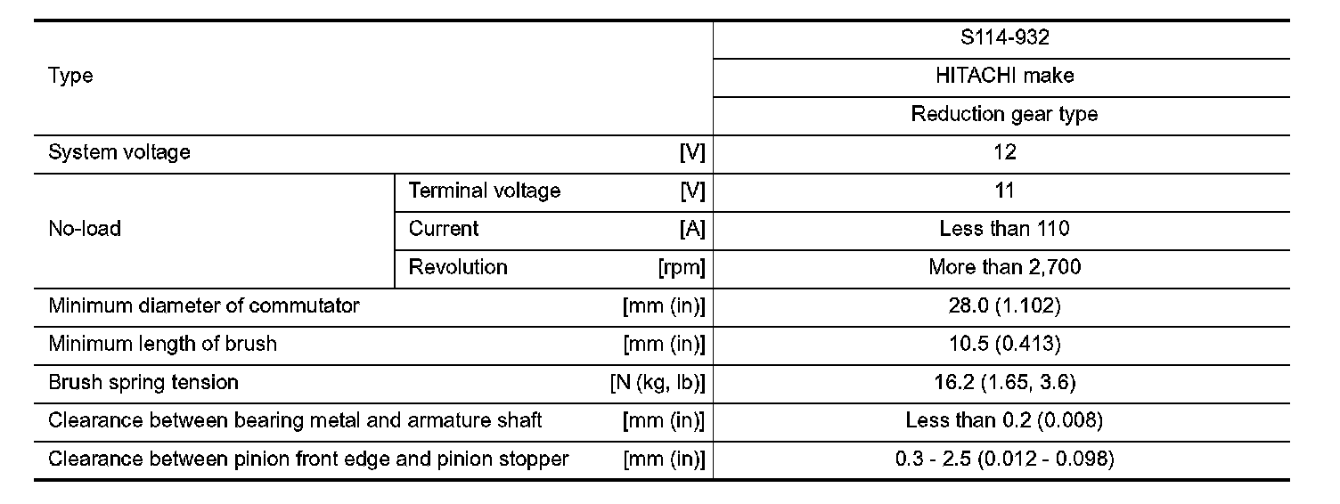 Starter Motor: Specifications