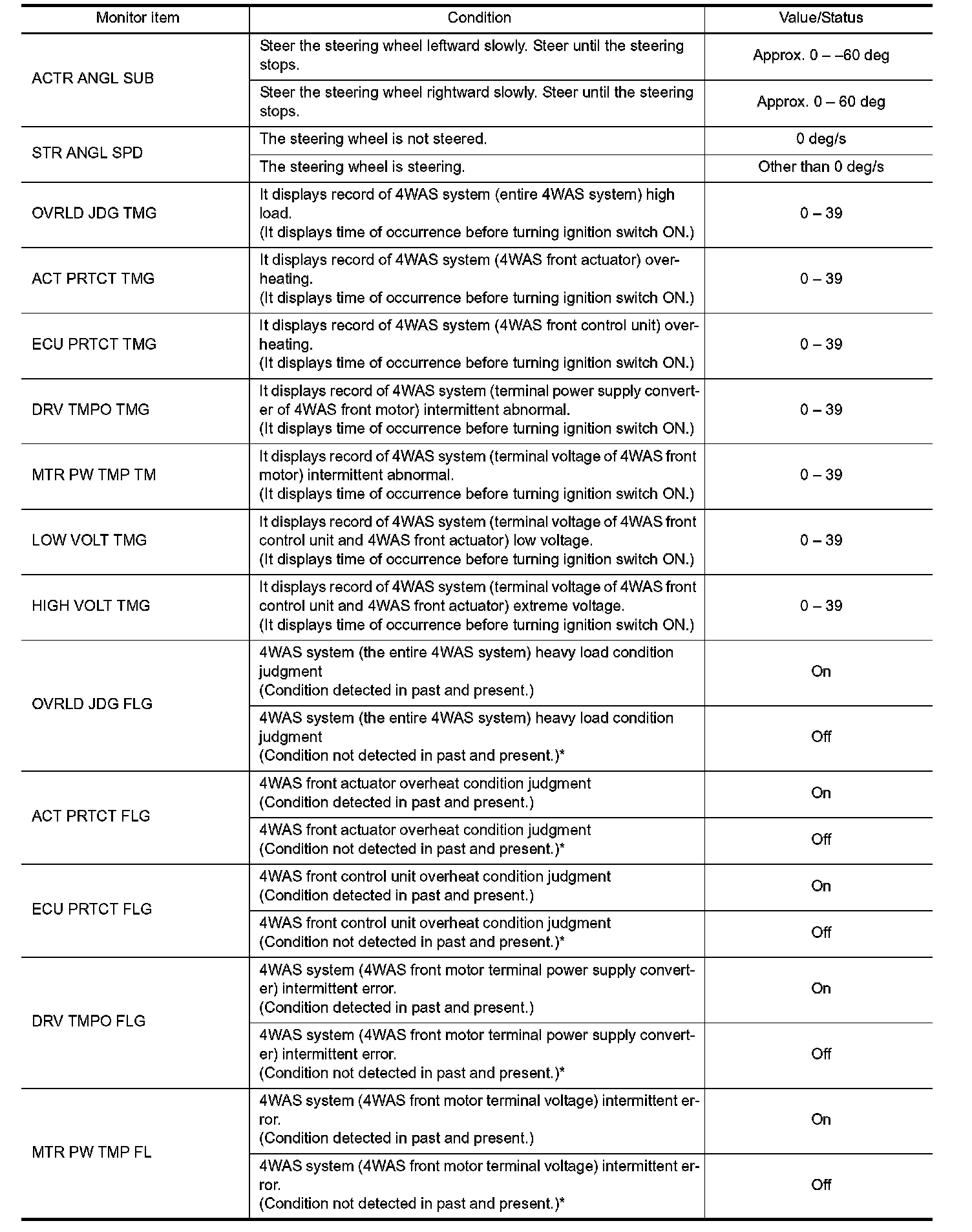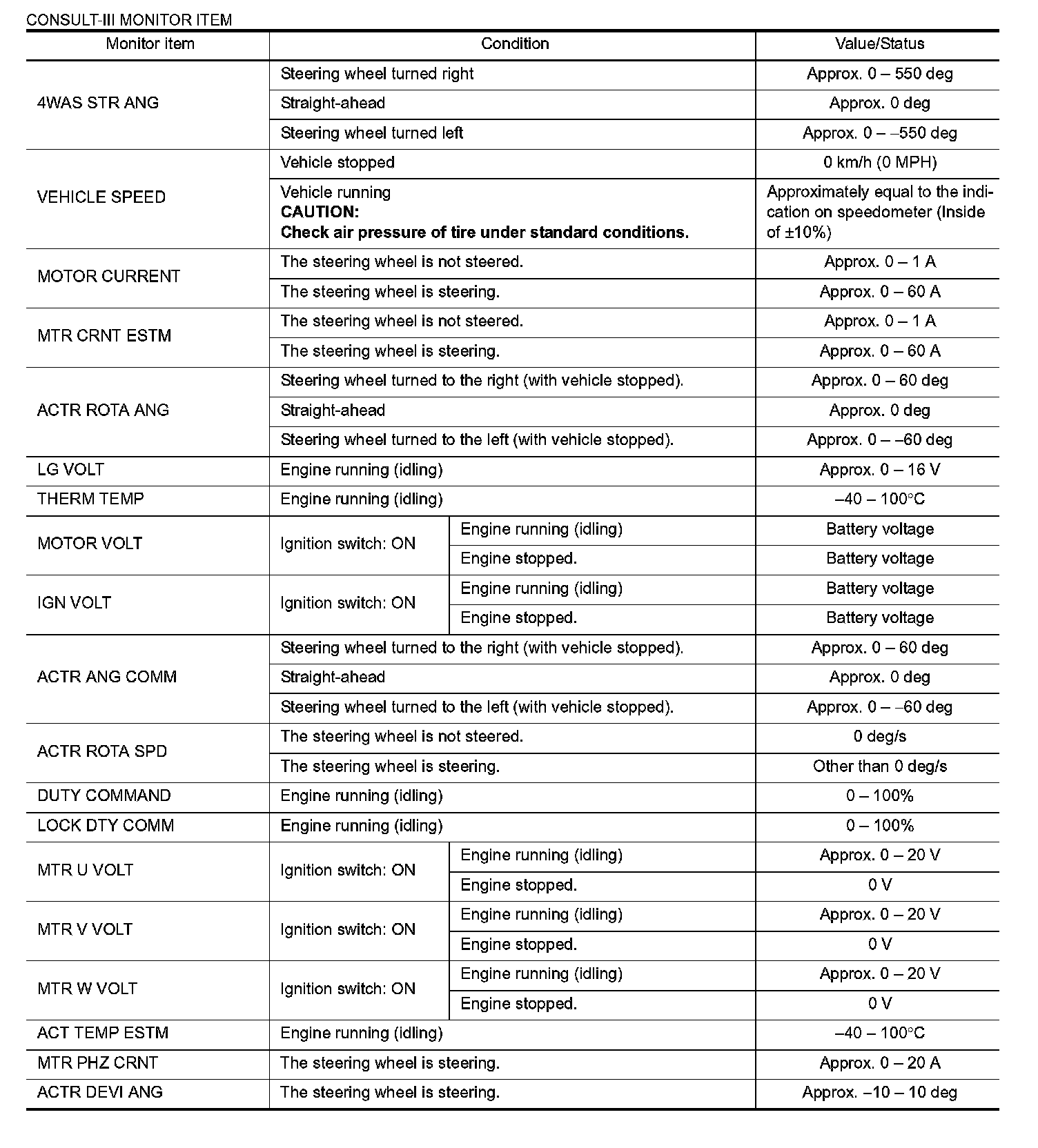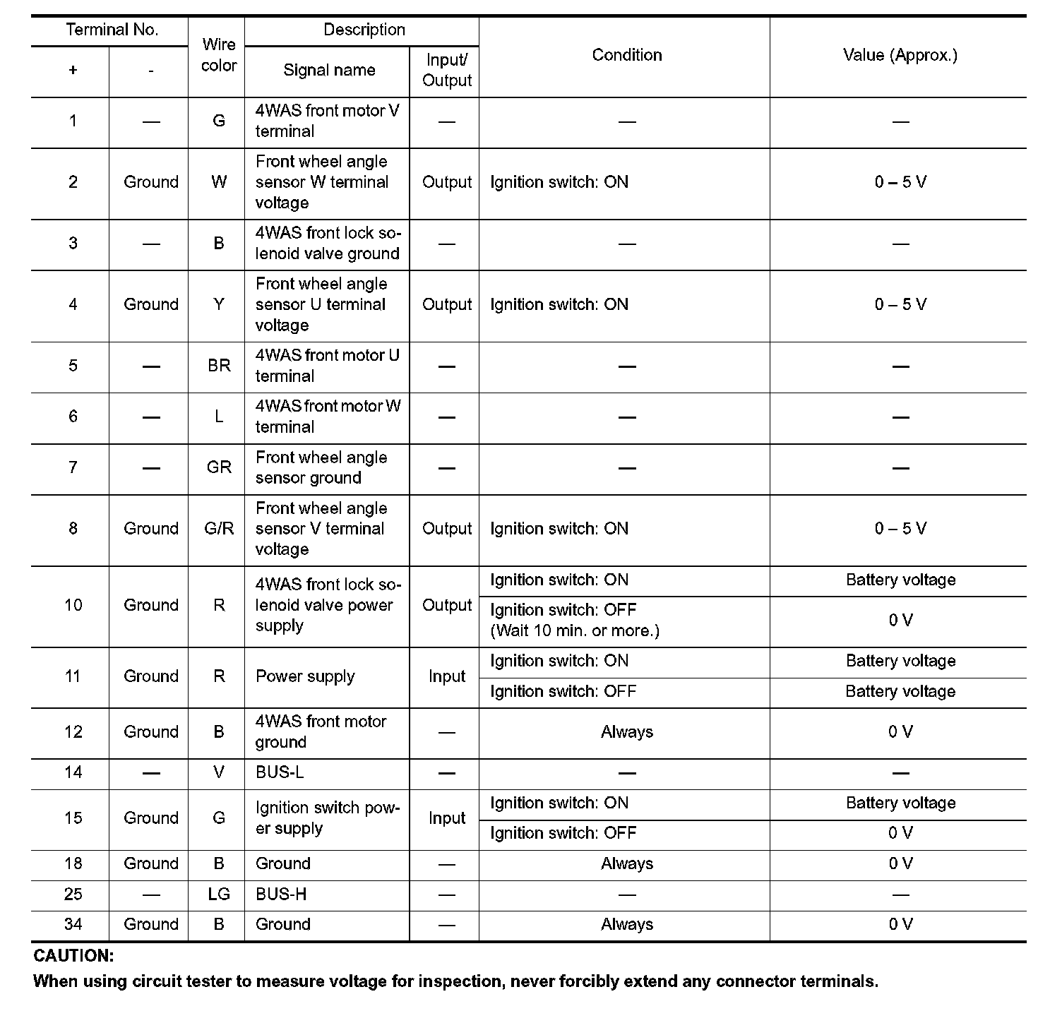 Pinout Values and Diagnostic Parameters