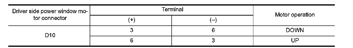 3. Check motor operation by connecting the battery voltage directly to driver side power window motor connector.