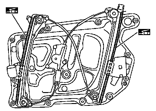 - Lower slightly the glass [approximately 10 to 20 mm (0.394 to 0.787 in)] and check that the clearance to the body side weather-strip is parallel. Loosen the regulator mounting bolts, guide rail mounting bolts, and glass and guide rail mounting bolts to correct the glass position if the clearance between the glass and body side weather-strip is not parallel.