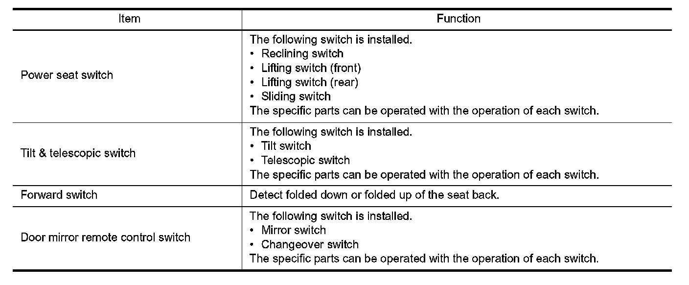 MANUAL FUNCTION : Component Description