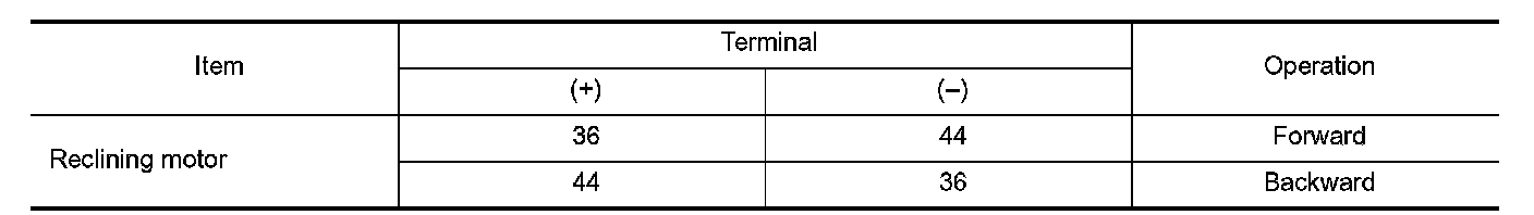 3. Supply reclining motor terminals with battery voltage and check operation.