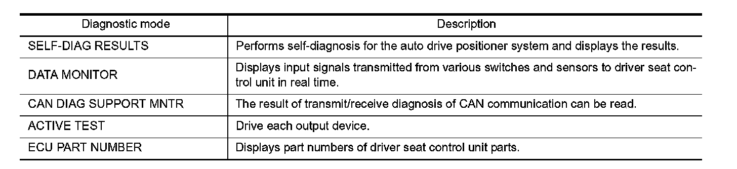 DIAGNOSIS SYSTEM (DRIVER SEAT C/U)