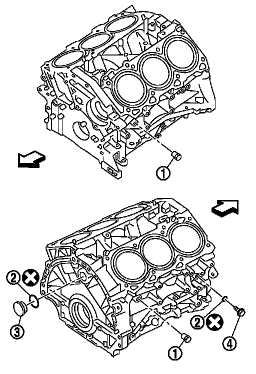 6. Drain engine coolant by removing water drain plug (1) from both sides of the cylinder block as shown in the figure.