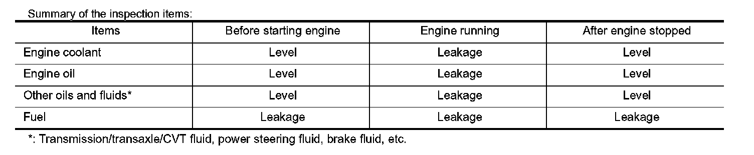 The following are procedures for checking fluid leakage, lubricant leakage.