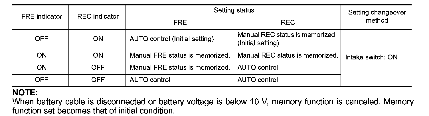When ignition switch is turned from OFF to ON, inlet port can be set to AUTO or manual.