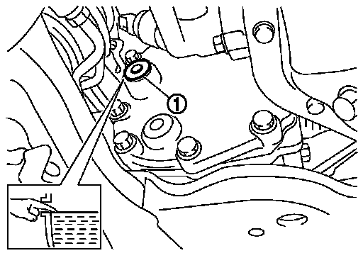 1. Remove filler plug (1). Fill with new gear oil until oil level reaches the specified level near filler plug mounting hole.