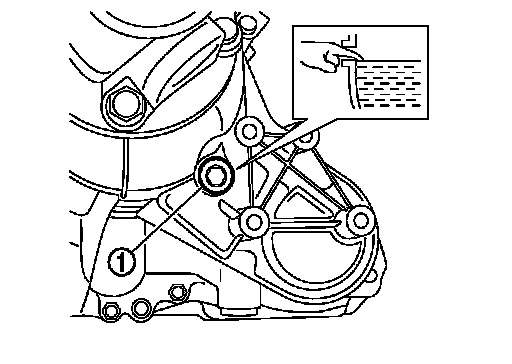 1. Remove filler plug (1) and gasket. Then check that fluid is filled up from mounting hole for the filler plug.