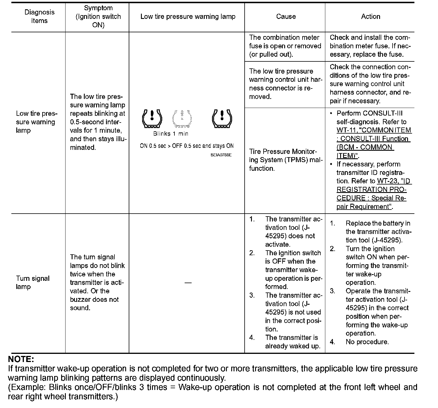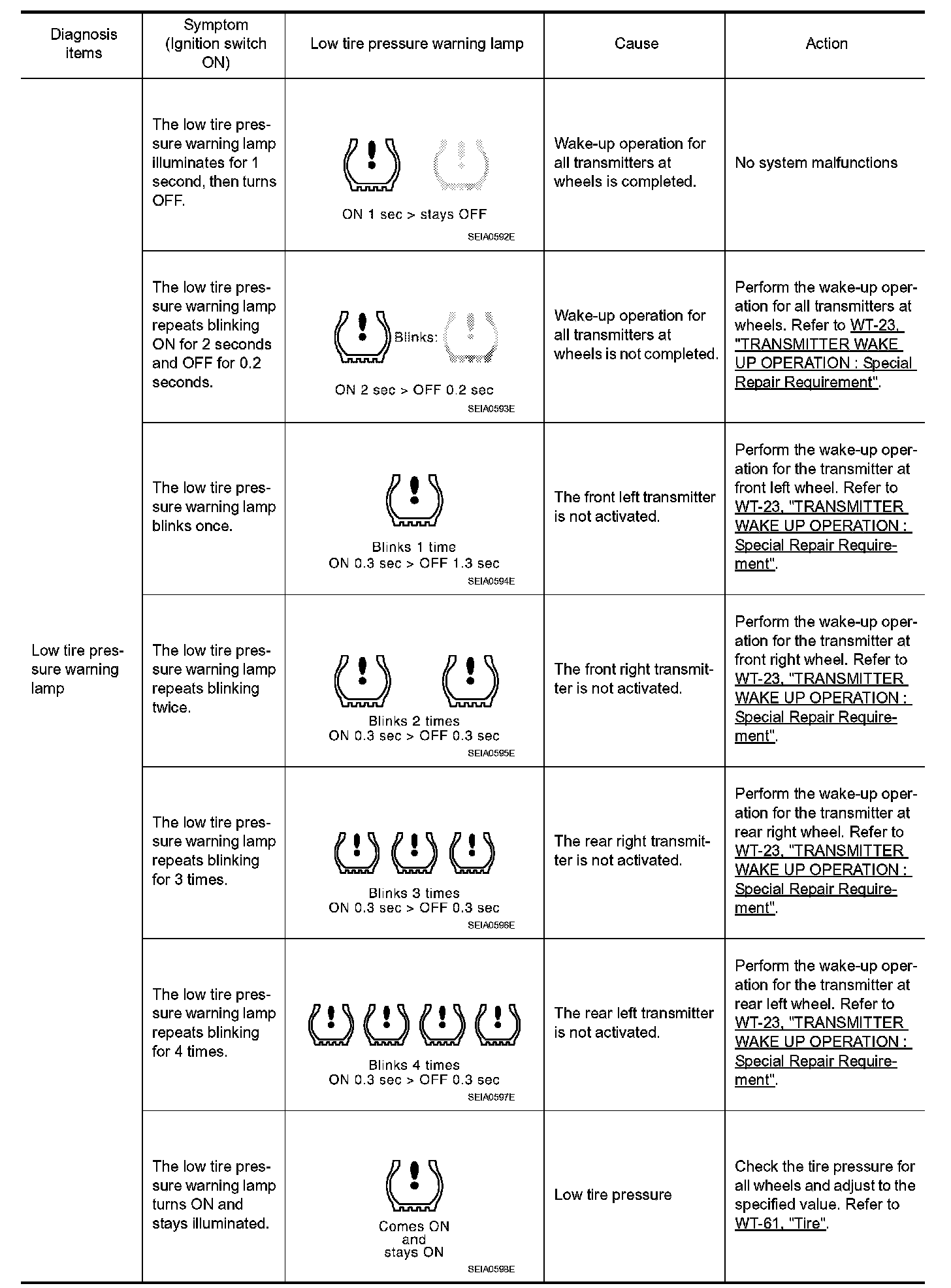 LOW TIRE PRESSURE WARNING LAMP SYMPTOM CHART
