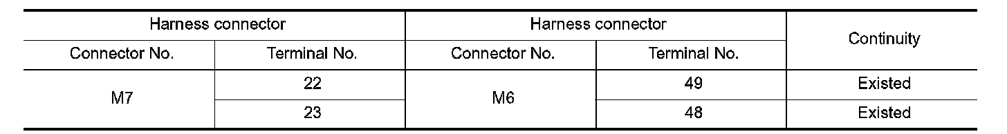 2. Check the continuity between the harness connector terminals.