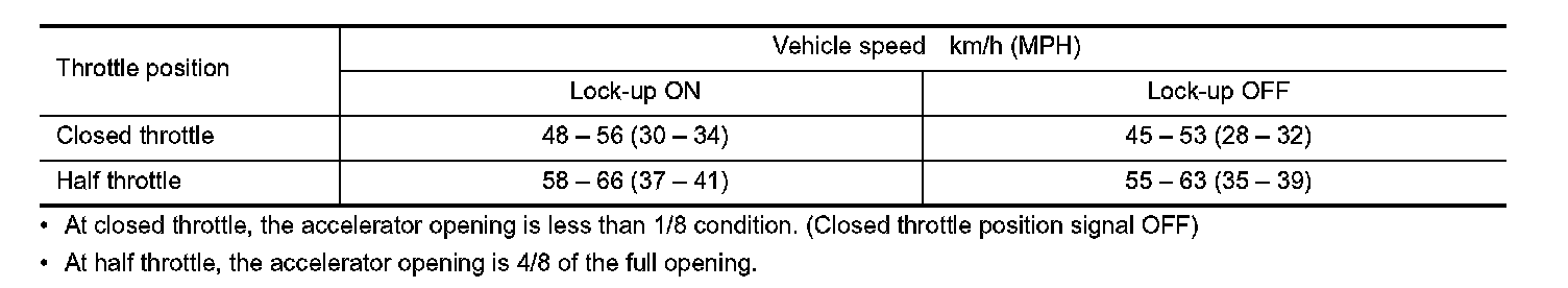 Vehicle Speed at Which Lock-up Occurs/Releases