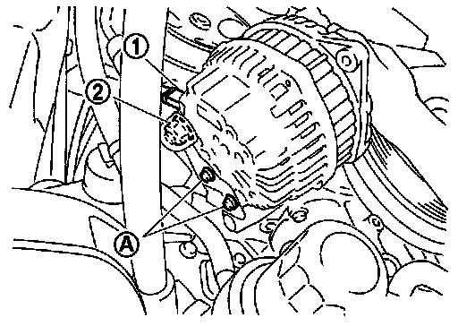 10. Pull and turn alternator, and then remove the harness bracket bolts (A).