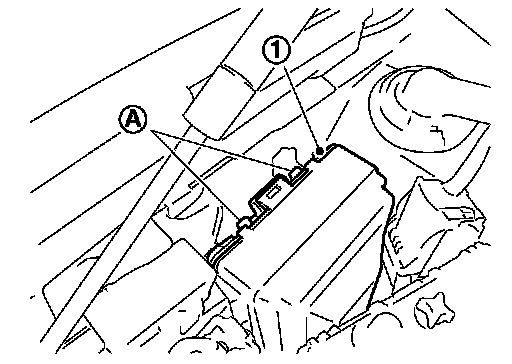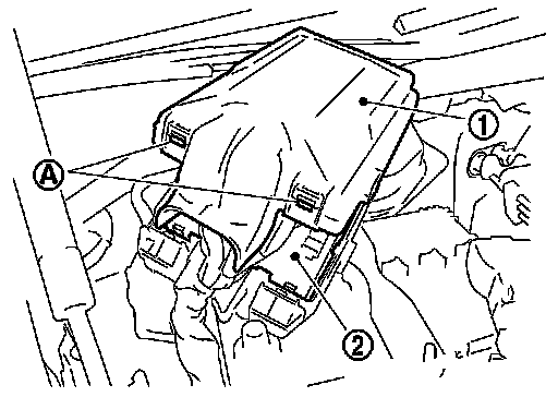 4. Remove the IPDM E/R cover A (1). While pressing the pawls (A) at the lower end of the IPDM E/R cover A