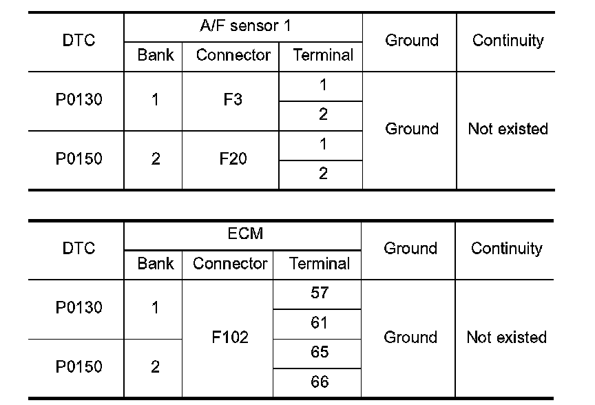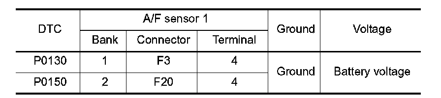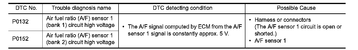 P0132, P0152 A/F SENSOR 1