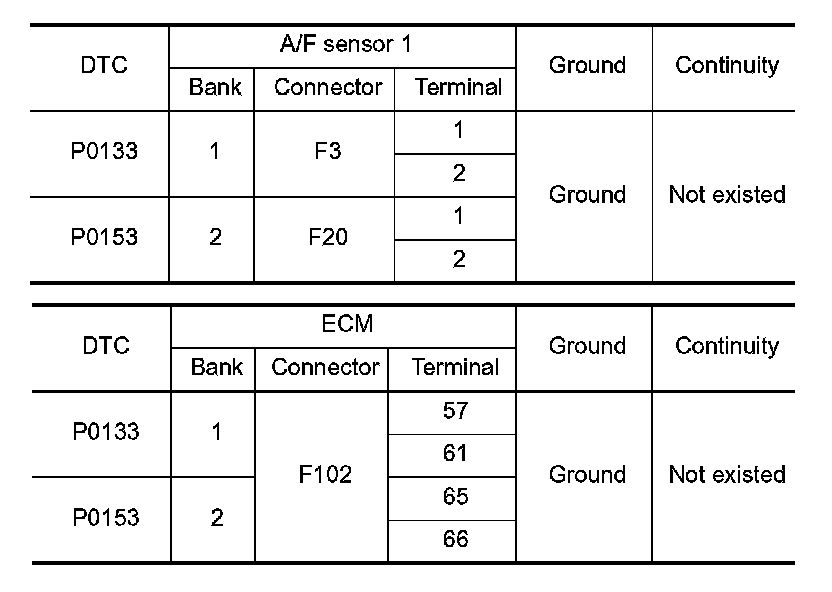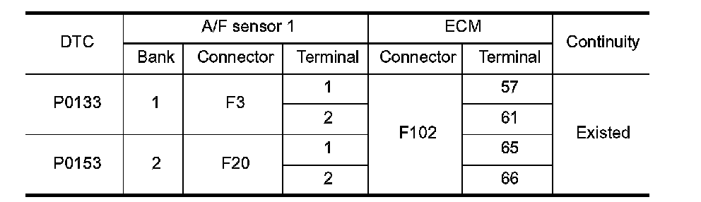 P0133, P0153 A/F SENSOR 1