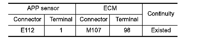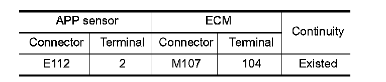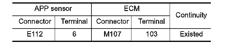 1. Check the continuity between APP sensor harness connector and ECM harness connector.