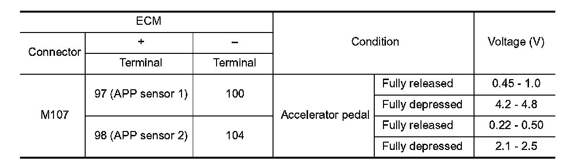 1. Disconnect accelerator pedal position (APP) sensor harness connector.