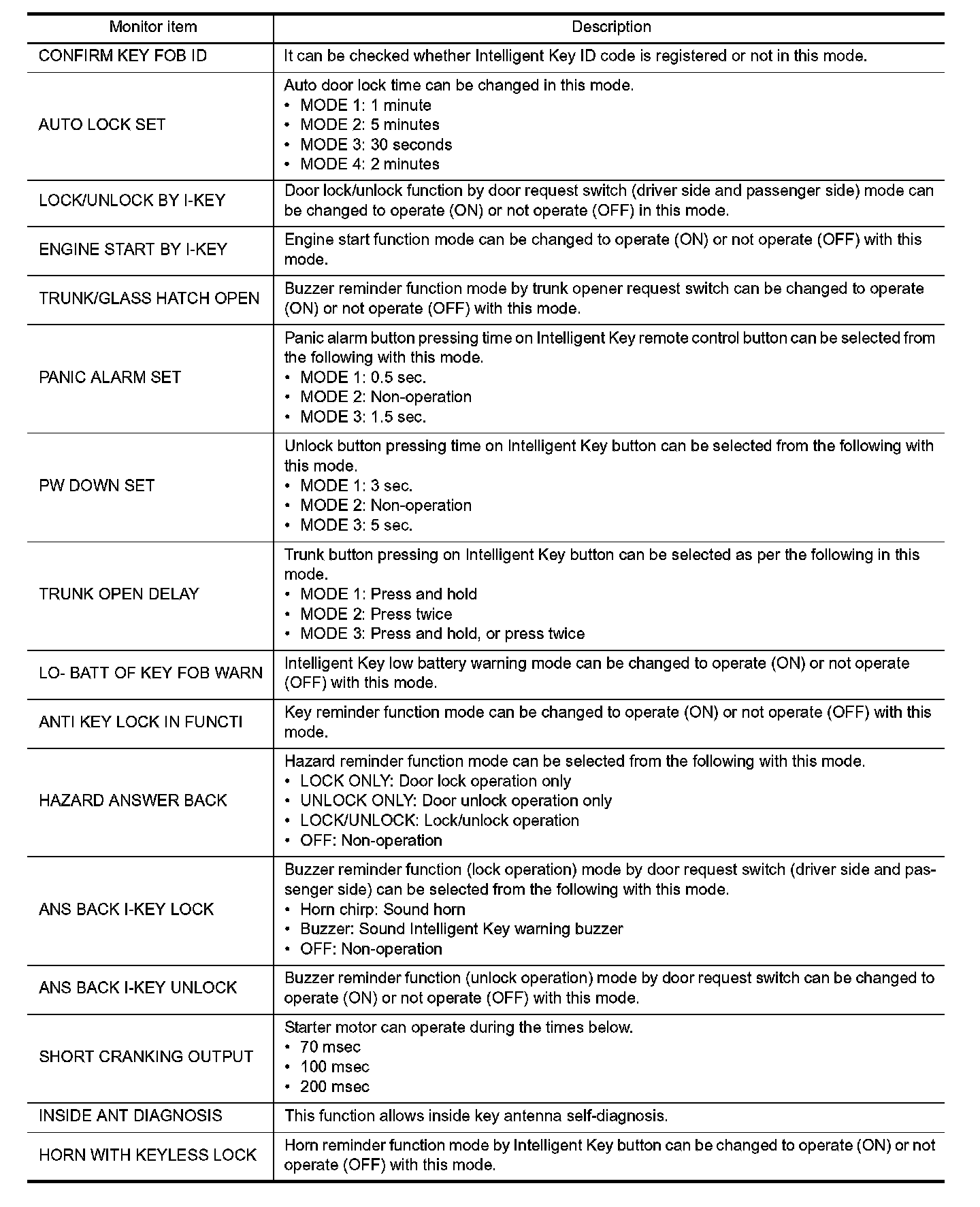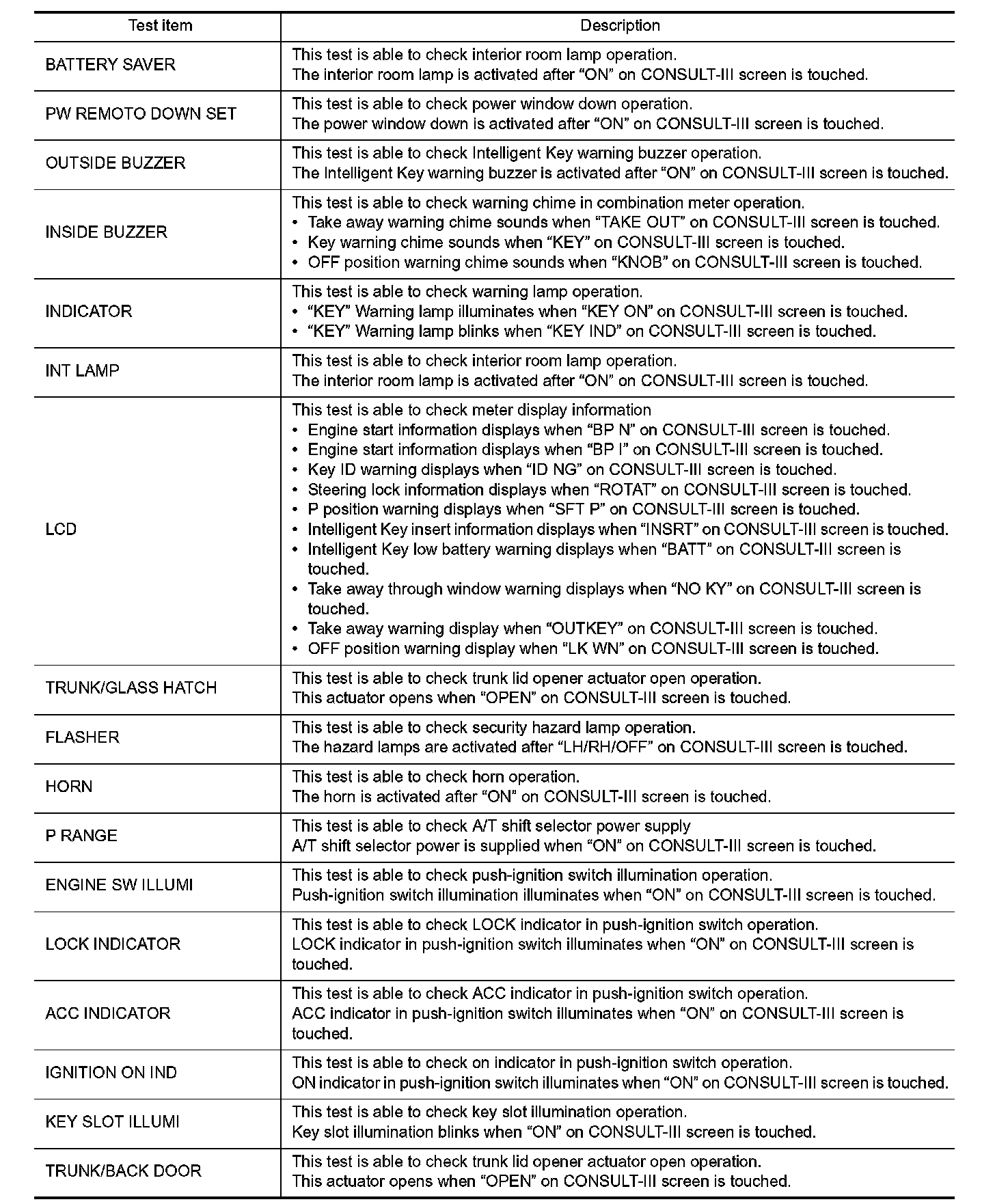 INTELLIGENT KEY : CONSULT-III Function (BCM - INTELLIGENT KEY)