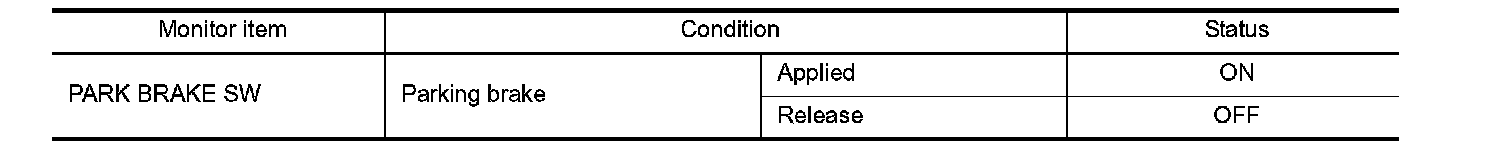 2. Check parking brake switch signal under the following conditions.