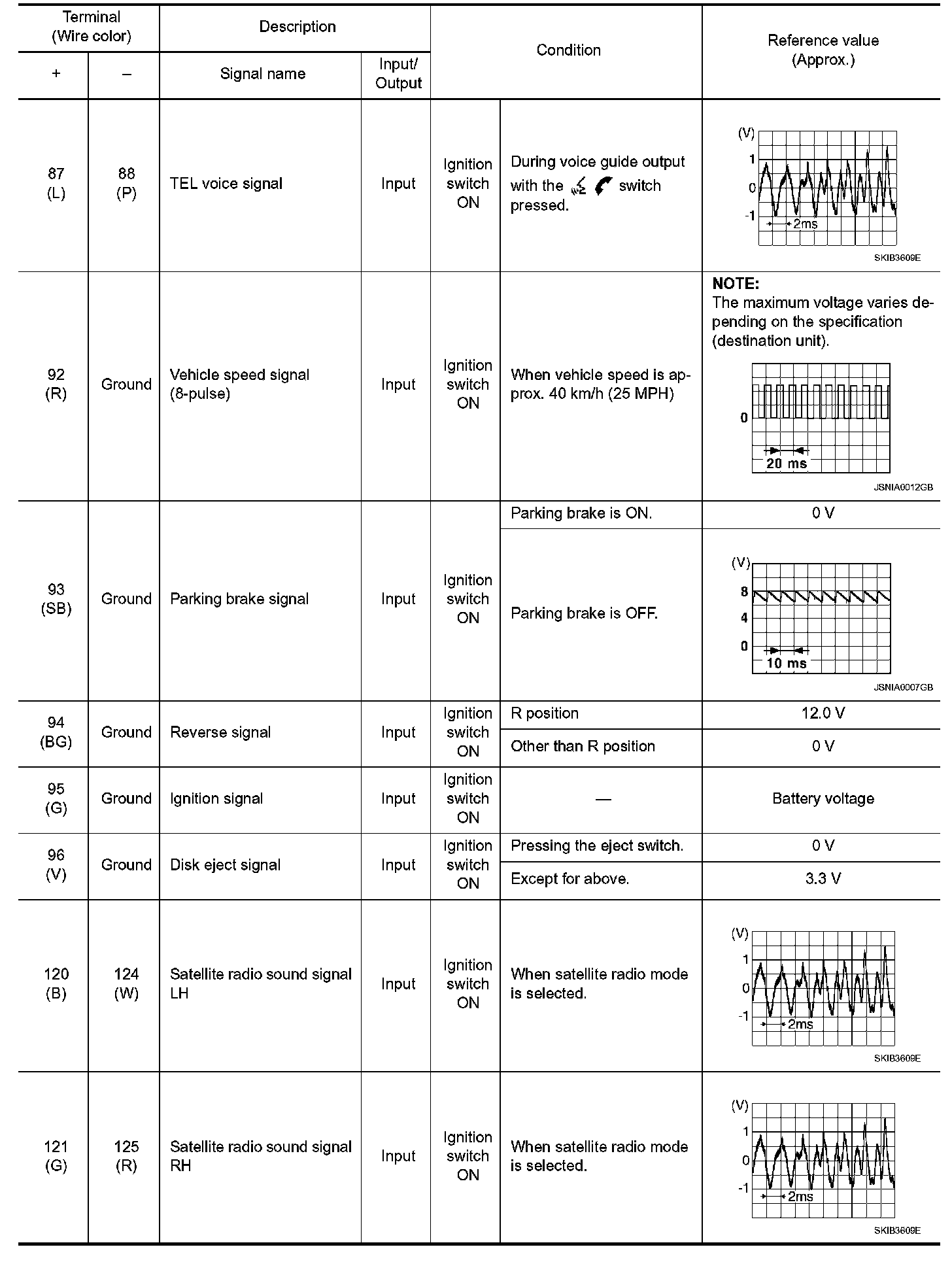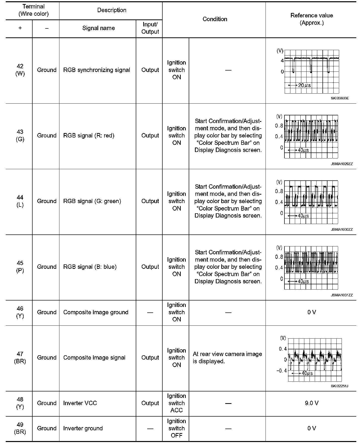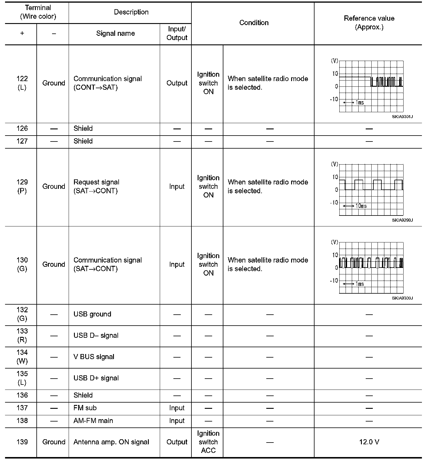 Pinout Values and Diagnostic Parameters