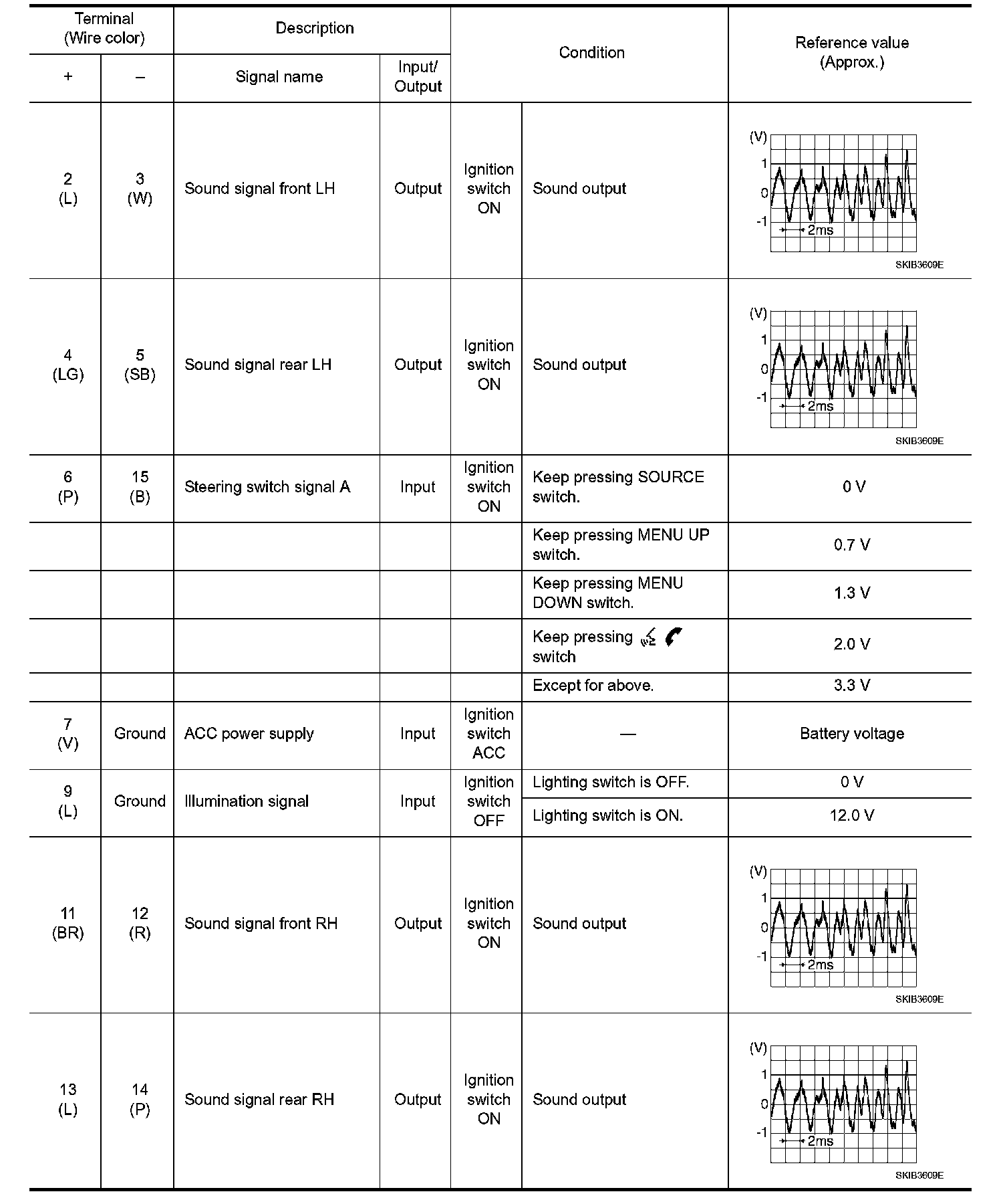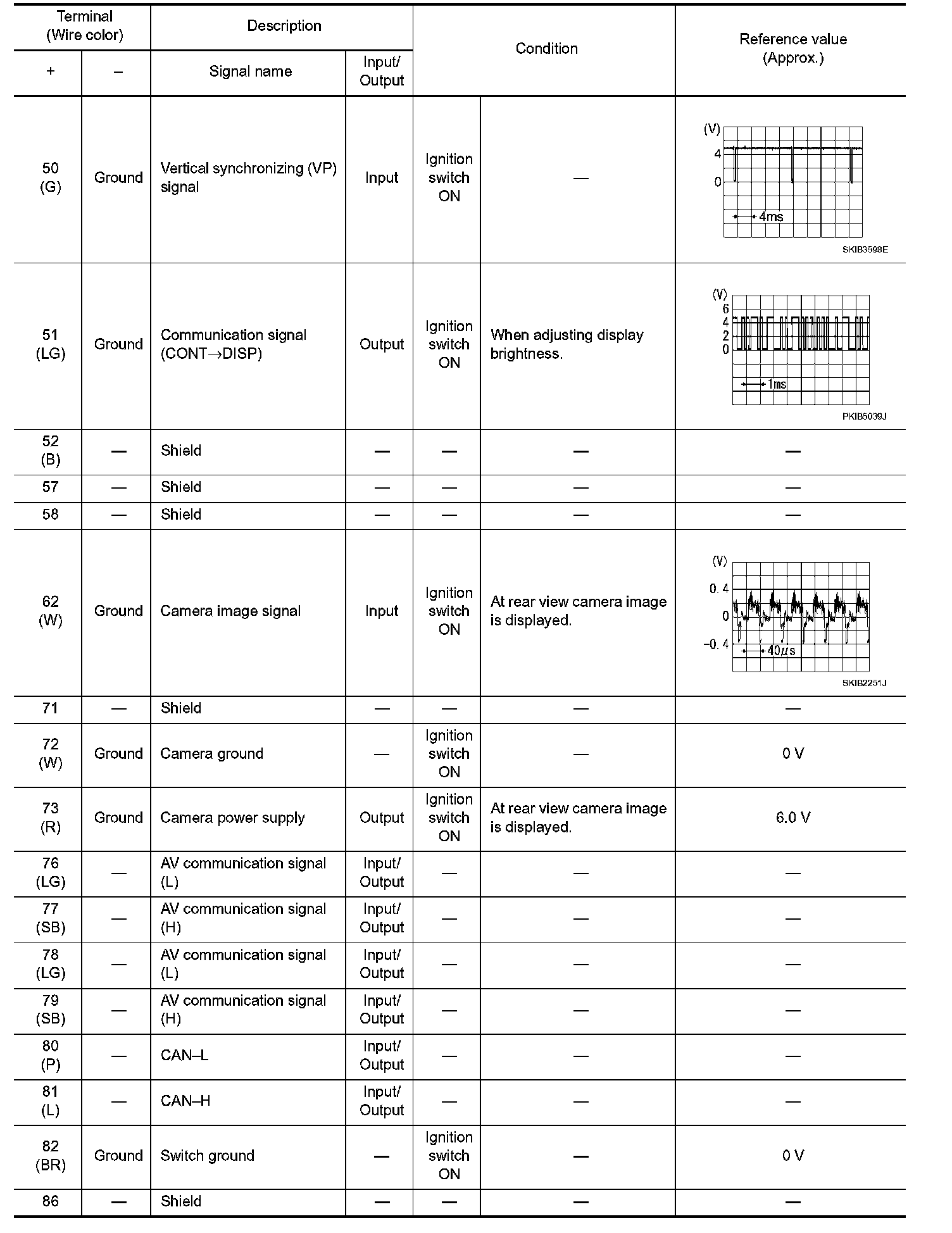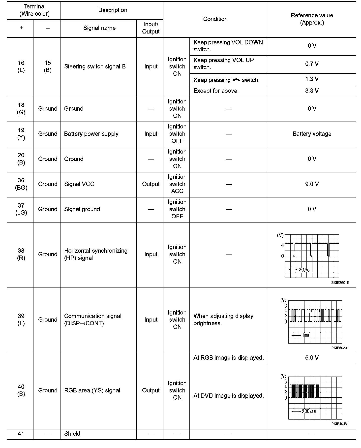 Pinout Values and Diagnostic Parameters