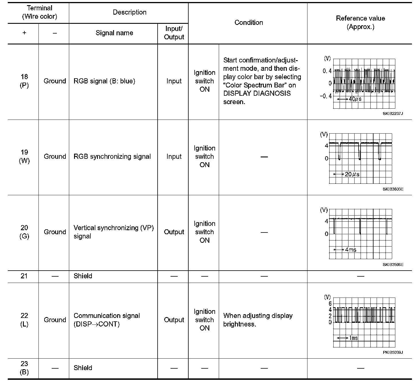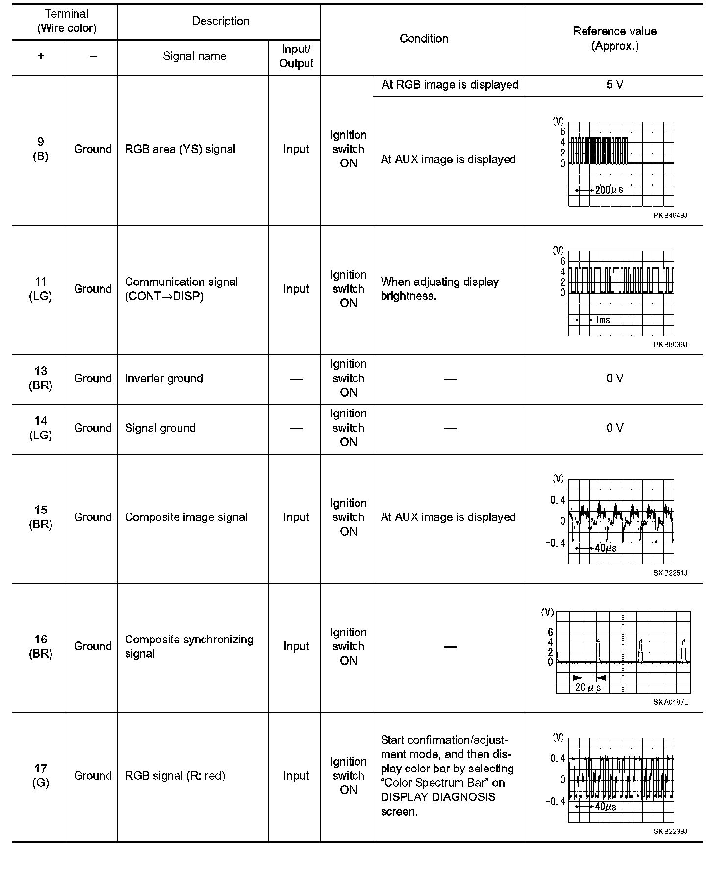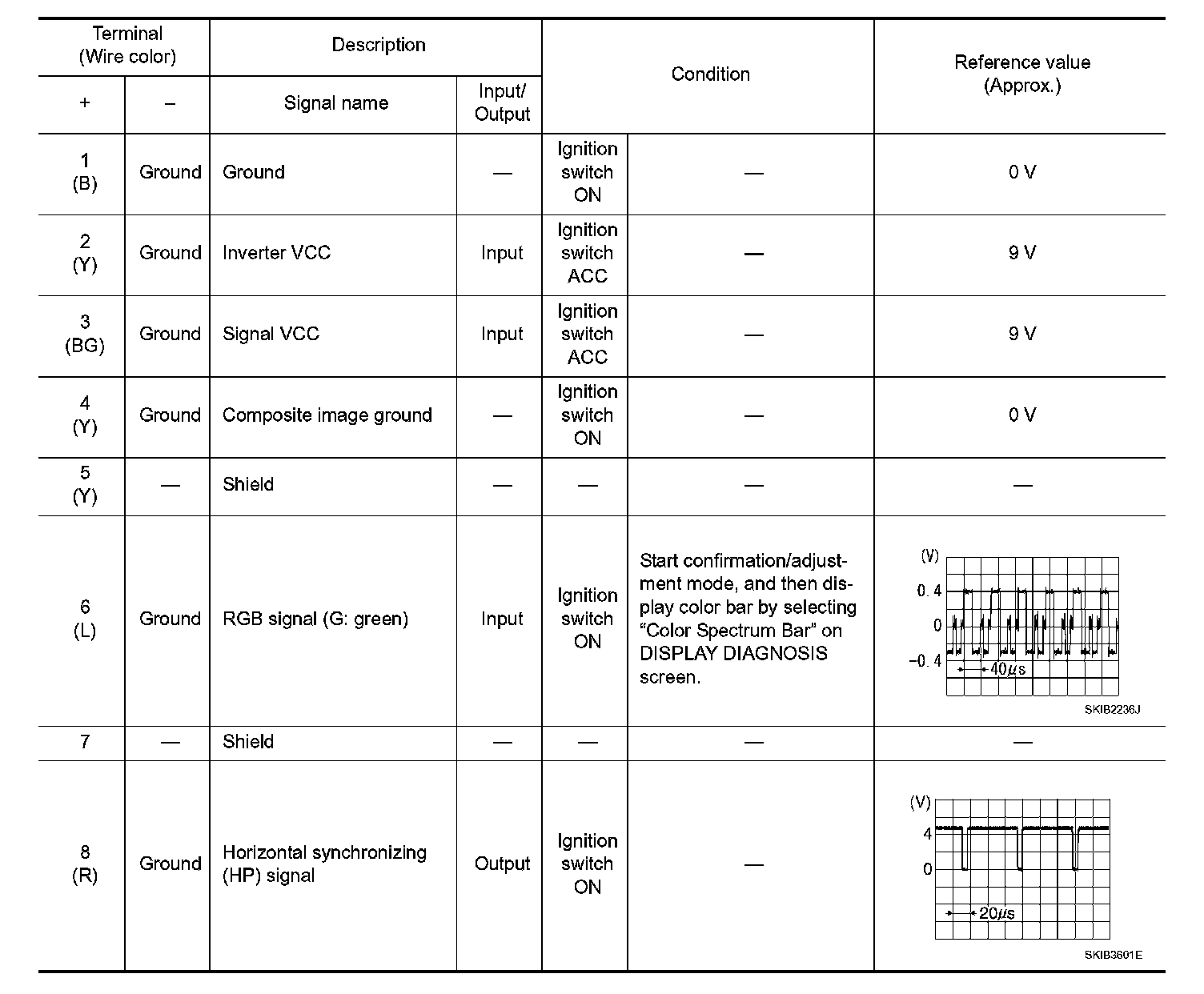 Pinout Values and Diagnostic Parameters