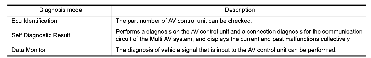 DIAGNOSIS SYSTEM (AV CONTROL UNIT)