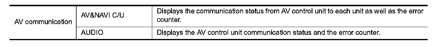 When "AV communication" of "CAN Diag Support Monitor" is selected, the following function will be performed.