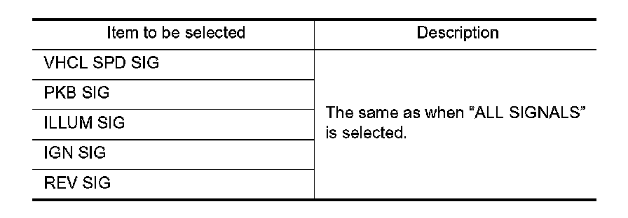 Allows the technician to select which vehicle signals should be displayed and displays the status of the selected vehicle signals.