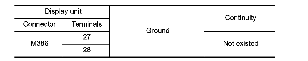 4. Check continuity between display unit harness connector and ground.