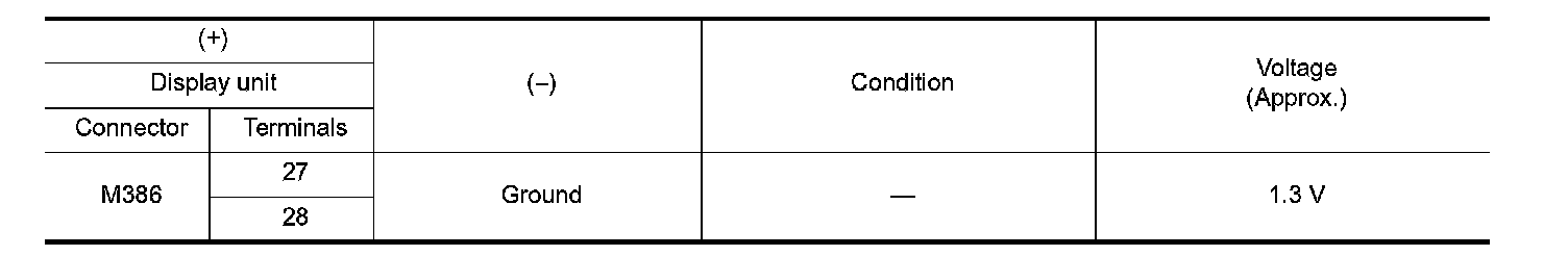 3. Check signal between display unit harness connector and ground.
