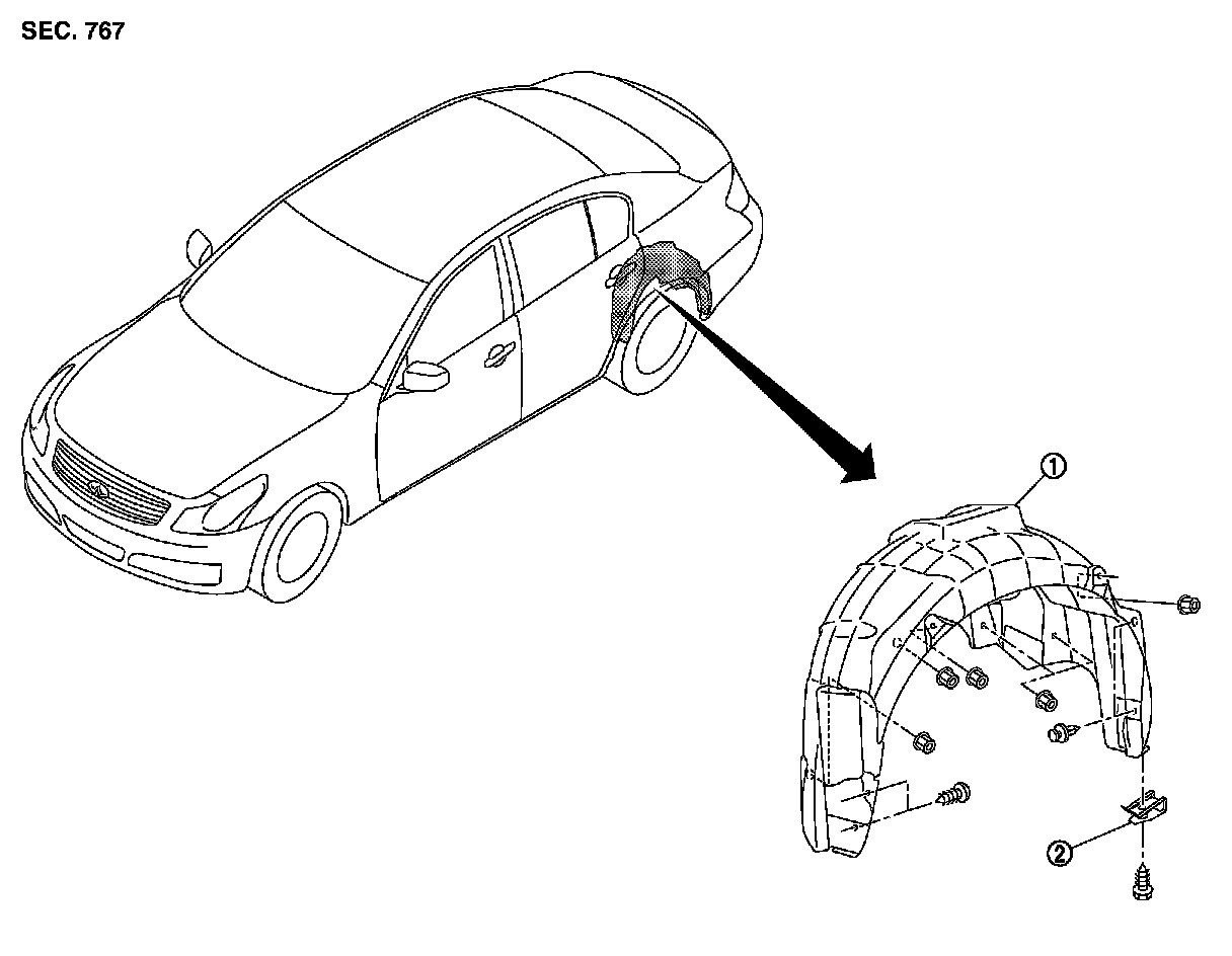 REAR WHEEL HOUSE PROTECTOR : Exploded View